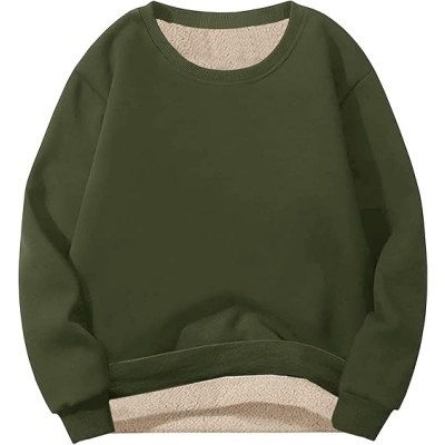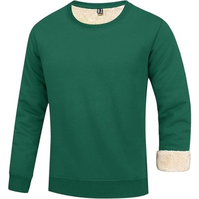 Men's Crewneck Sweatshirt Warm Sherpa Lined Sweatshirts Heavyweight Long Sleeve Cotton Shirts Winter Fleece Pullover