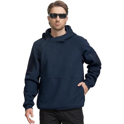 Men's Tactical Winter Fleece Pullover Hoodie Warm Long Fleece lined Hooded Sweatshirt