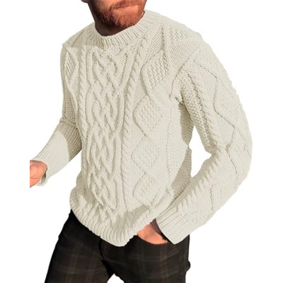 Men's Slim Fit Crewneck Pullover Sweater Winter Casual Chunky Cable Knit Comfort Heavy Long Sleeve