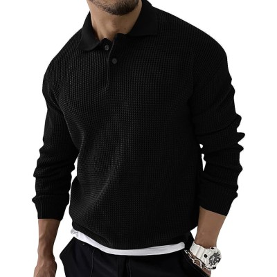 Mens Long Sleeve Polo Sweater Casual Quarter Button Up Lapel Collar Fall Winter Tops for Men
