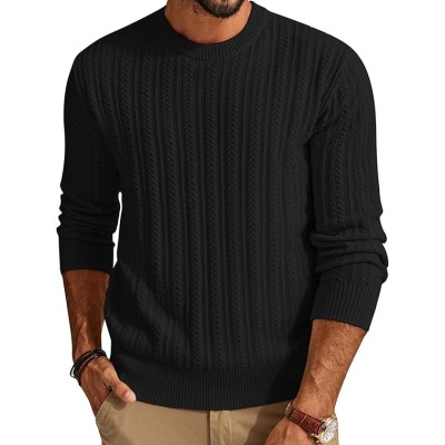 Mens Crew Neck Sweater Lightweight Cable Knitted Pullover Sweaters