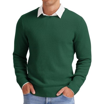 Mens Crewneck Pullover Sweater Waffle Textured Long Sleeve Knitted Sweaters