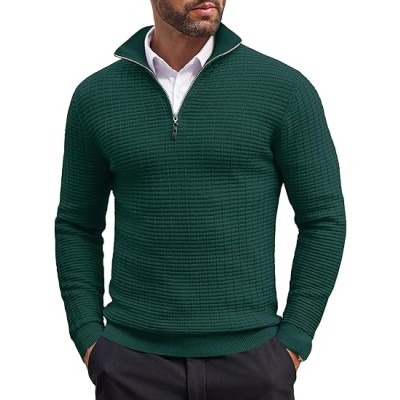 Men's Quarter Zip Sweaters Slim Fit Lightweight Cotton Knitted Casual Mock Neck Pullover Sweaters