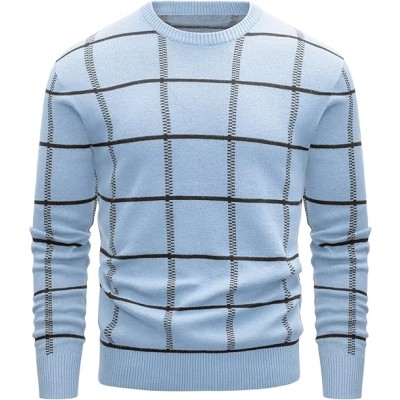 Men's Sweater Pullover Sweaters Crewneck Plaid Sweater Casual Cotton Sweater Fall Winter Sweater