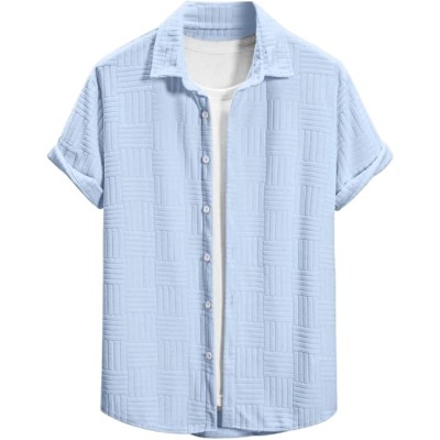 Mens Jacquard Casual Shirts Short Sleeve Button Down Shirt Fashion Textured Summer Shirt Beach Shirt Dress Shirt