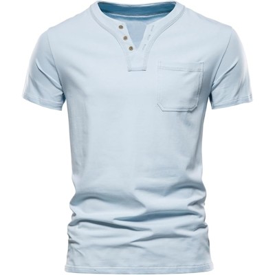 Men's Casual T-Shirt V Neck Henley Shirt Short Sleeve Classic Tops Soft Strech Cotton with Chest Pocket