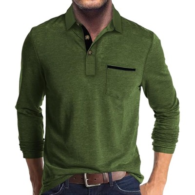 Mens Fashion Polo Shirts Cotton Classic Long Sleeve Thermal Button Shirt with Pocket