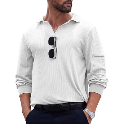 Mens Knit Polo Shirts Casual V Neck Long Sleeve Lightweight Ribbed Knit with Collar Sweater Golf Polo with Pocket