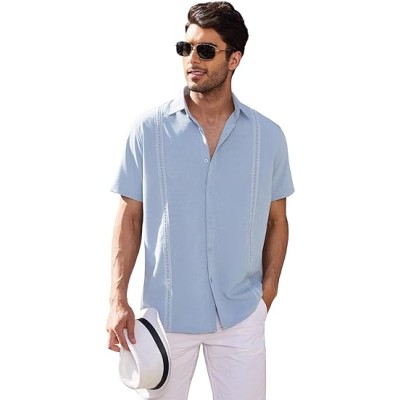 Mens Short Sleeve Cuban Guayabera Shirt Casual Summer Beach Button Down Shirts