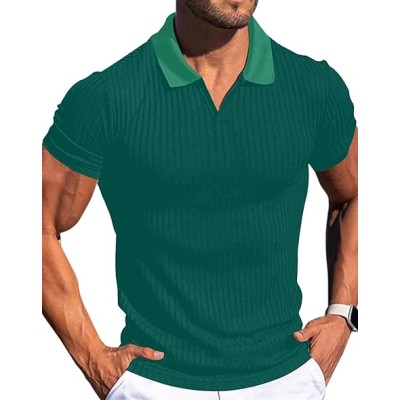 Men's Polo Shirts Short Sleeve T Shirts Ribbed Knit Zipper Polo Shirts Fashion Casual Golf Tee
